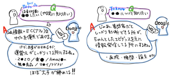 また、単純に「知りたい」という情報に関しては、運営者が専門機関である事を担保されているサイトが検索結果として表示される傾向が多い。