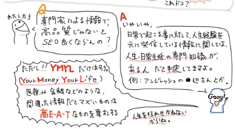 という事は、高E-A-Tじゃないとコンテンツをユーザーに届ける事ができないの?専門家以外は発信できないの?という疑問が出てくる。